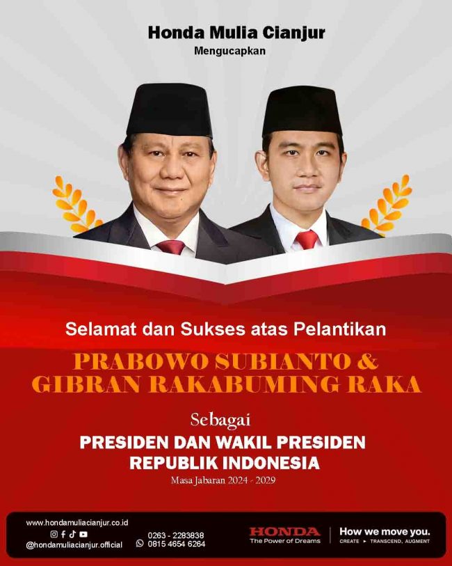 Selamat dan Sukses atas Pelantikan Presiden dan Wakil Presiden Republik Indonesia