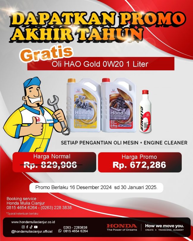 Dear customer, we would like to invite you to Honda Mulia Cianjur Hoki Deals January 17th, 2025 Valcano Resto Jl Mangunsarkoro gg Melati no 6